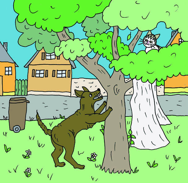 Ab und zu gibt es Probleme mit Hunden. Die Meinungen von Mizzi und Nero sind dazu unterschiedlich.